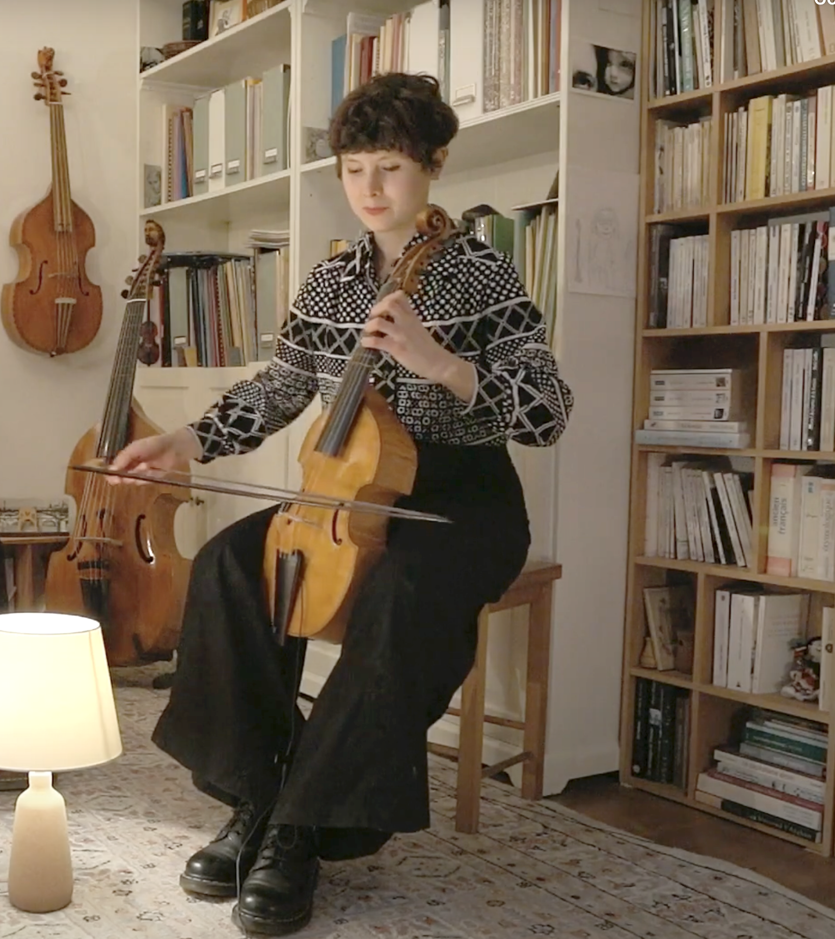 Pauline Chiama et Dominique Dalcan sont sur le plateau (viole de gambe, électronique et voix), le public autour...